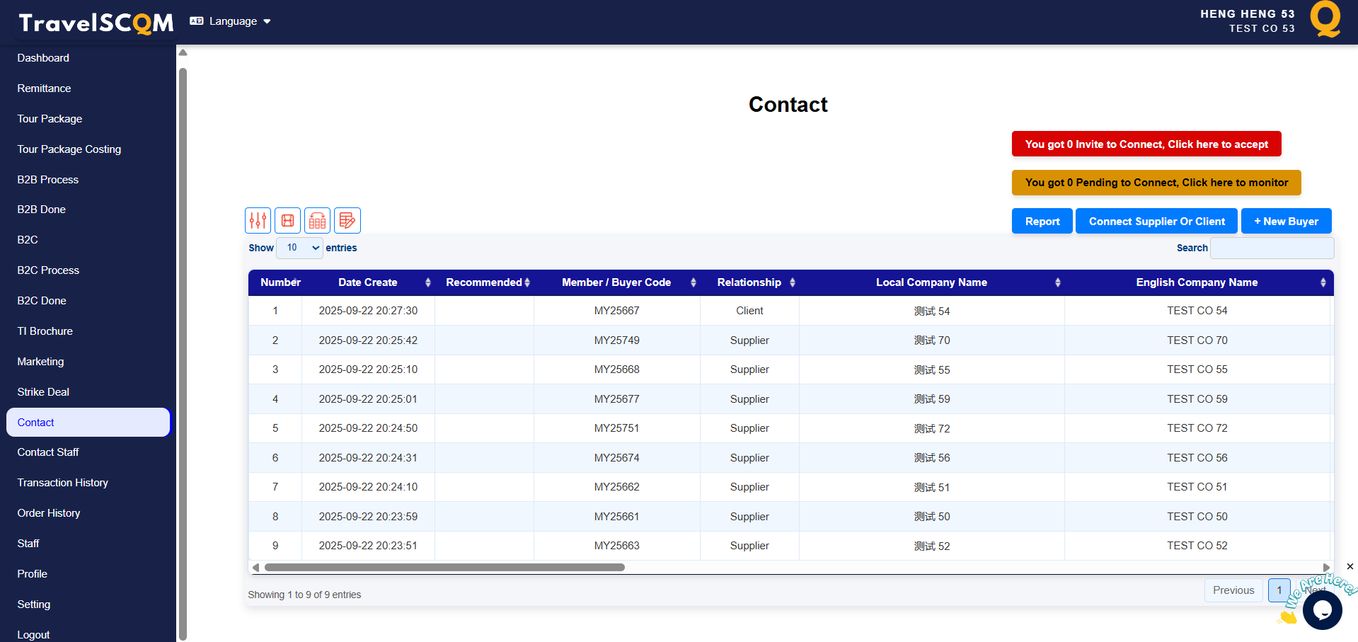Alternatively, you can also view your connections by navigating to TravelSCQM > Transaction History.