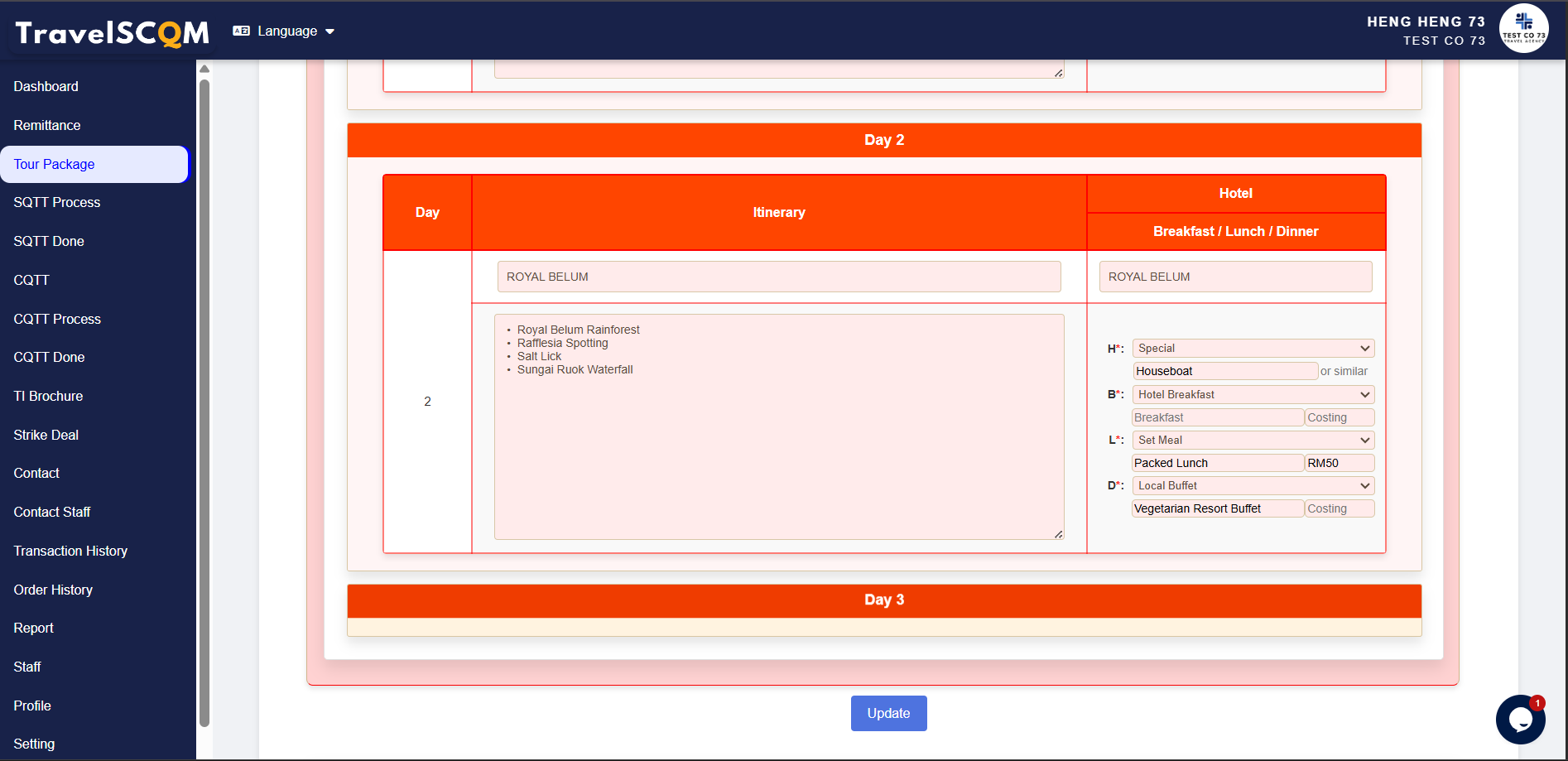 The Itinerary section includes all the essential details needed to present a complete tour plan. Components are stated following: