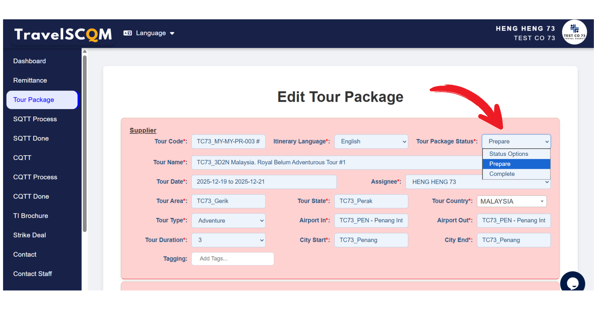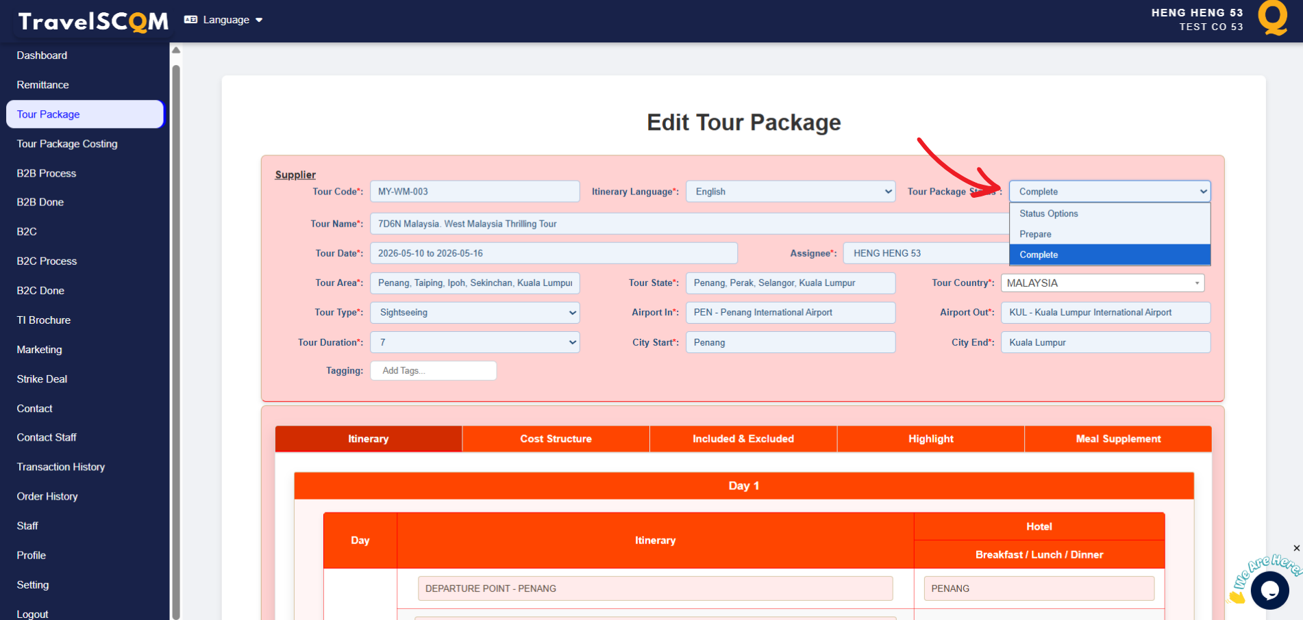 Select Complete when all required details are fully filled in and confirmed. This status means the package is finalized and ready to be used or shared.