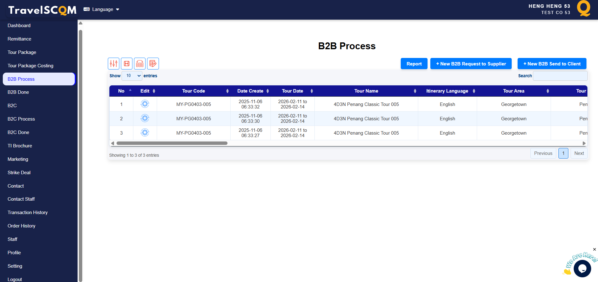 You will be directed to the B2B Process Page, where you can view a list of current in-progress quotations.