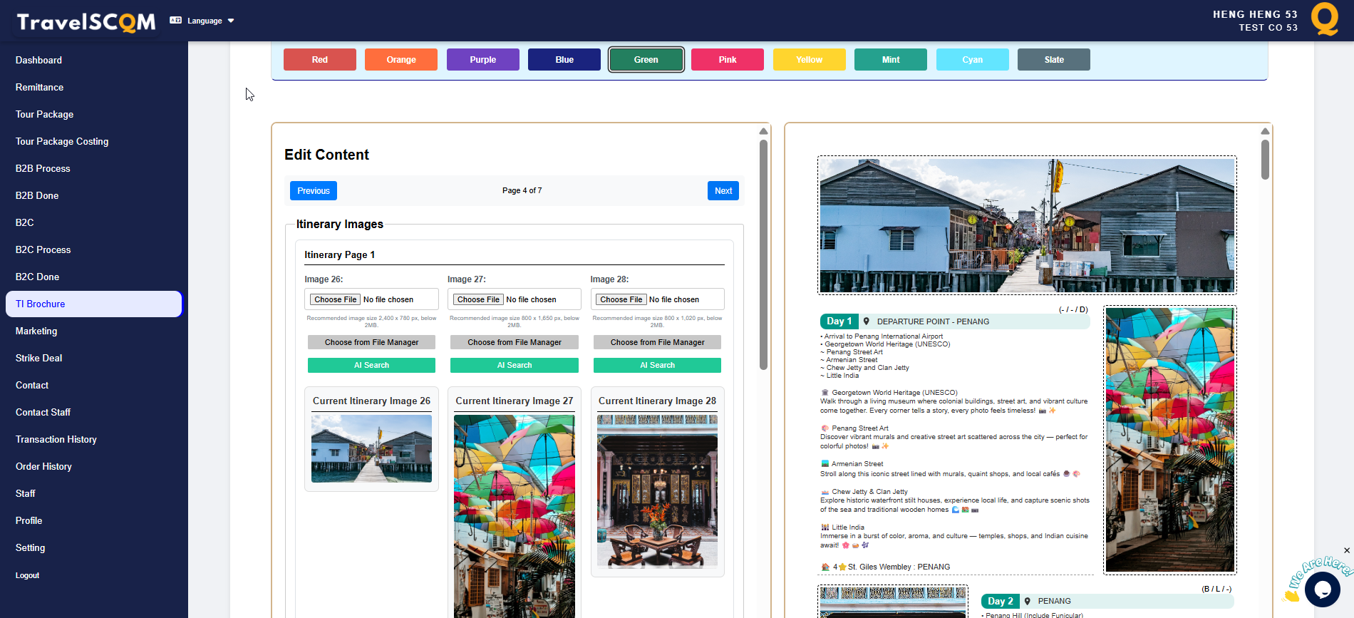 You can get the images from Canva or any other platform and insert them into the TI Brochure. There’s a section in the TI Brochure for itinerary images and content editing. Please make sure the images you insert match the required size specifications.