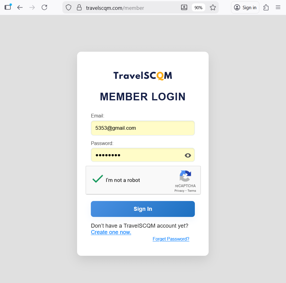 Goto https://travelscqm.com/member and login with your registered email address and password.