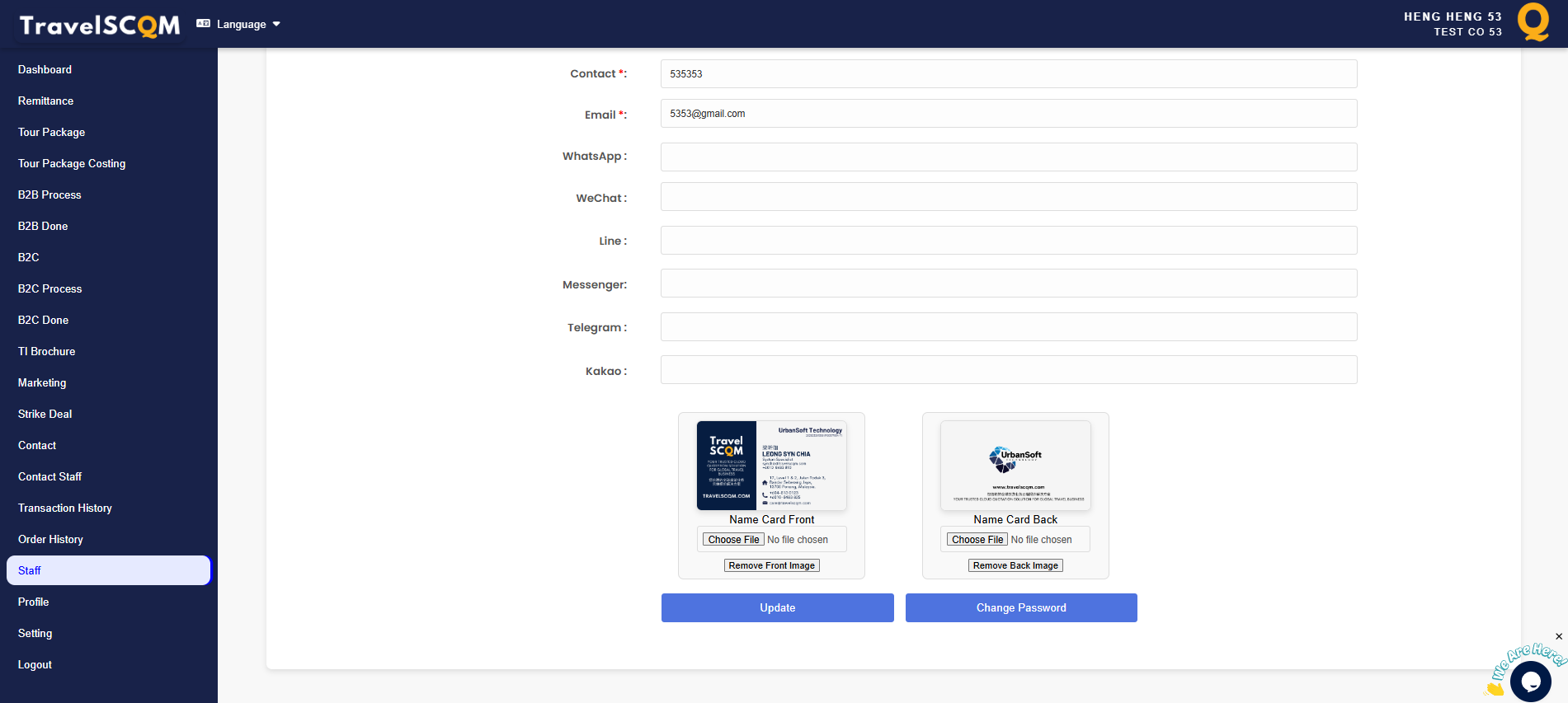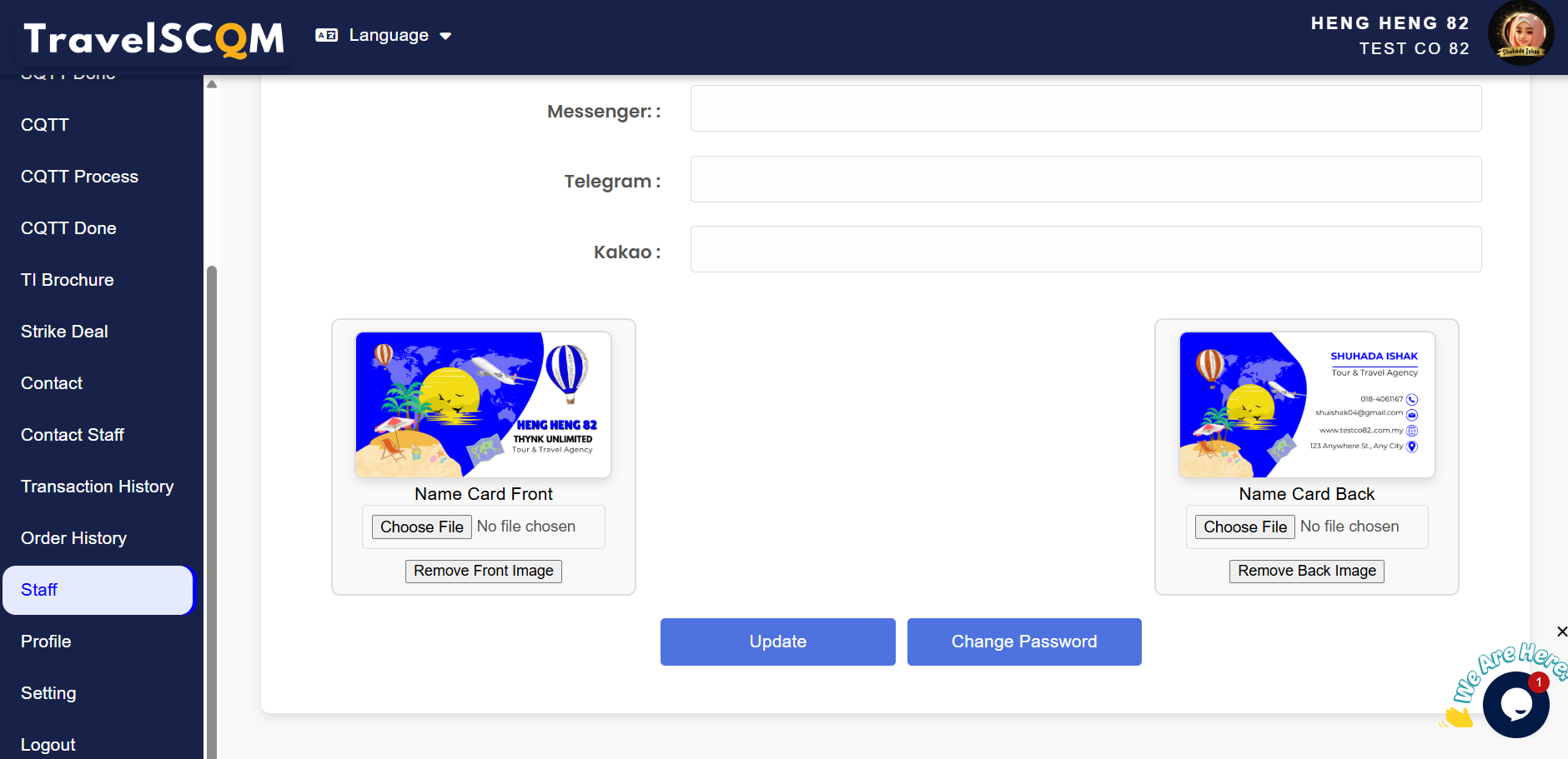 TravelSCQM > Staff > Edit > Change Password