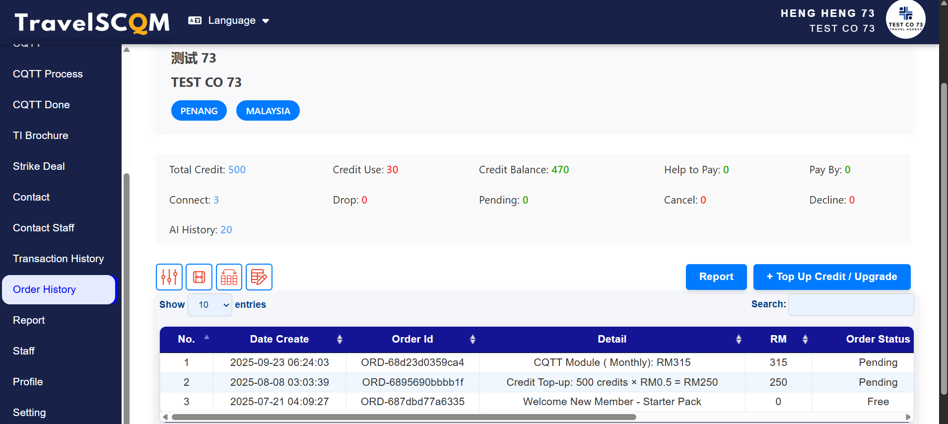 To enable this functionality, you may consider upgrading your subscription plan. By upgrading, you can unlock the ability to top up credits and connect with more potential partnerships on TravelSCQM. Please refer to How to upgrade/downgrade my subscription plan? for guidance on upgrading your plan.